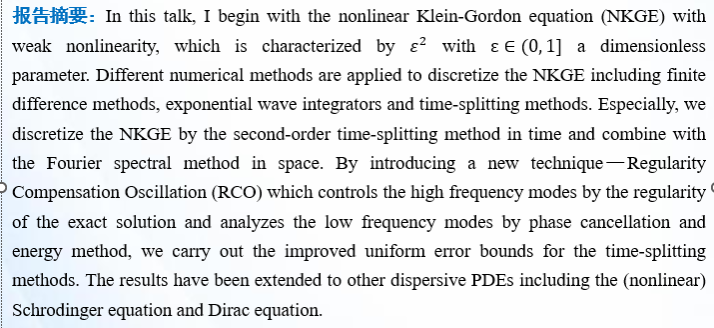 报告题目:Improved Uniform Error Bounds on Time-splitting Methods for Long-time Dynamics of Dispersive PDEs